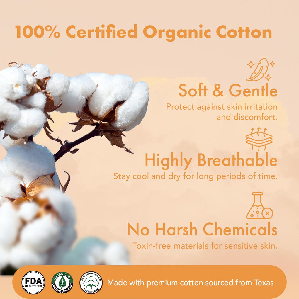 These flexible, comfortable liners feature a breathable organic cotton top sheet that keeps you dry, ensuring you feel, look, and smell fresh throughout the day.