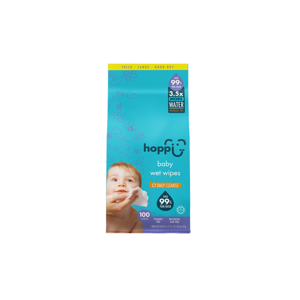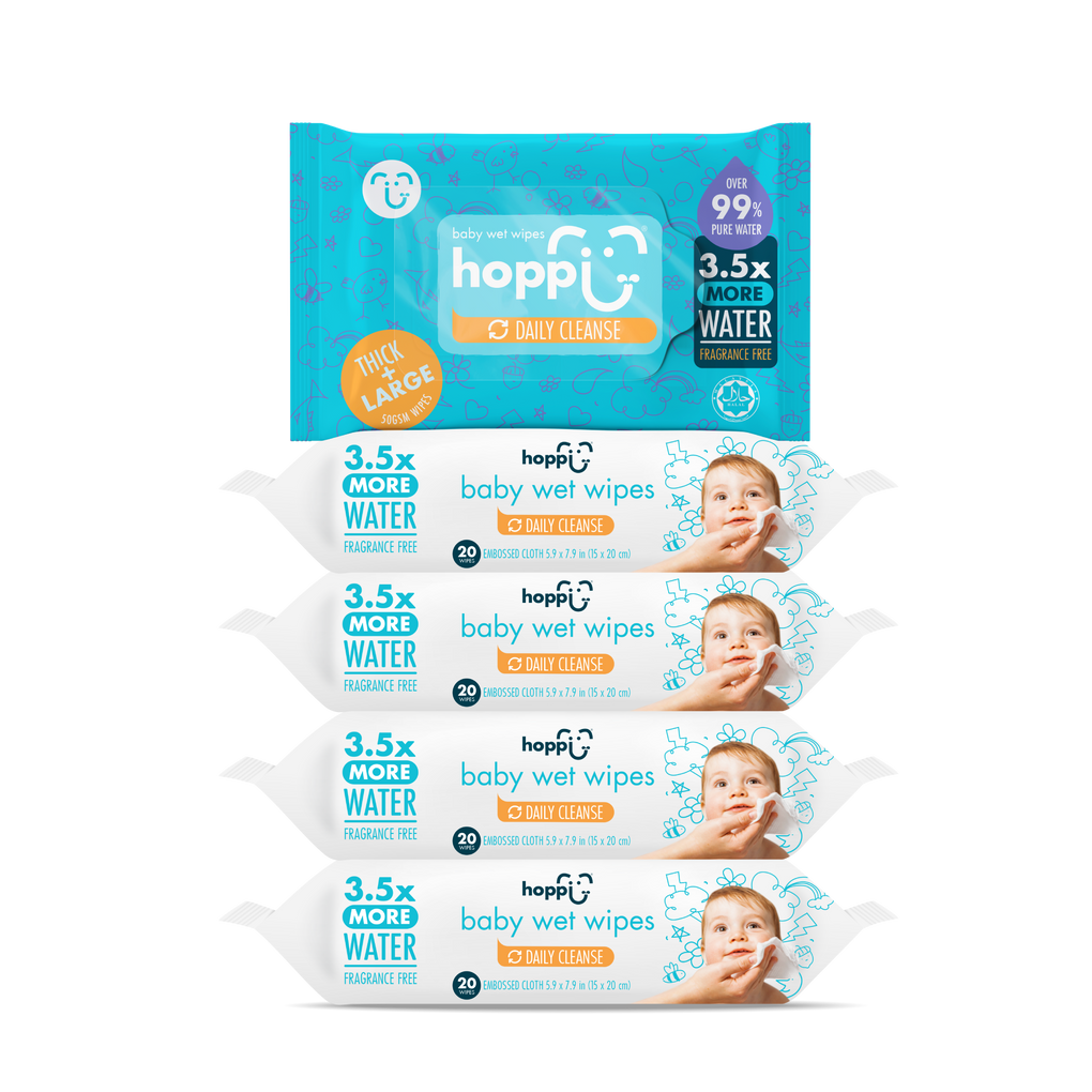 Hoppi™ Baby Wet Wipes is a 99% water wet wipes specially designed for the newborn & sensitive skin babies. It is softer, thicker, larger, and more durable than the average baby wet wipes in the market, while adhering to the highest international standards.