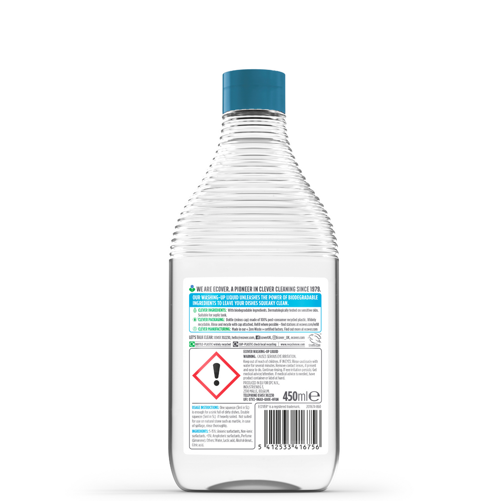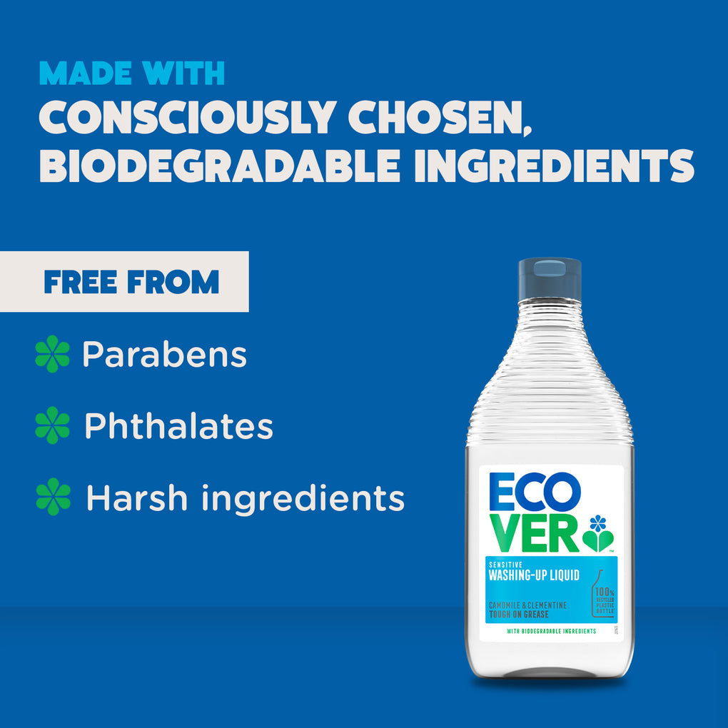 Ecover Washing-up Liquid unleashes the power of biodegradable plant-based ingredients, to leave your dishes squeaky clean.