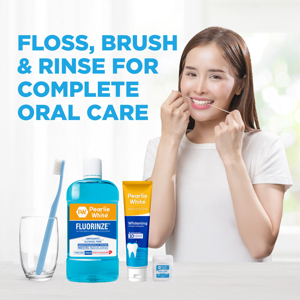 Take 45cm Pearlie White FlossCare and wind around your middle fingers.