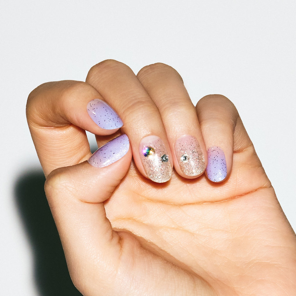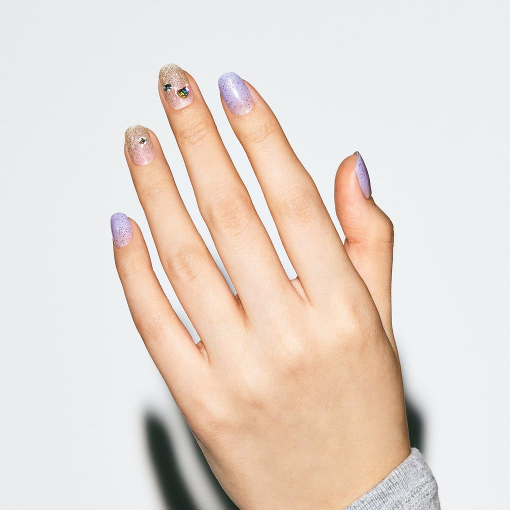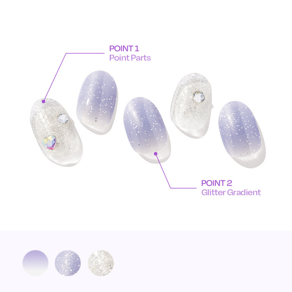 This design features a radiant blend of magnetic purple powder gradients and shimmering heart accents atop a silver gradient base, making your hands sparkle even more. The combination of purple...