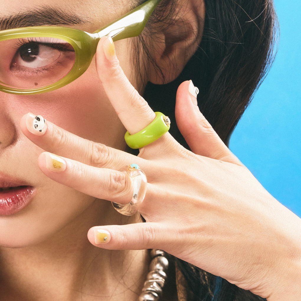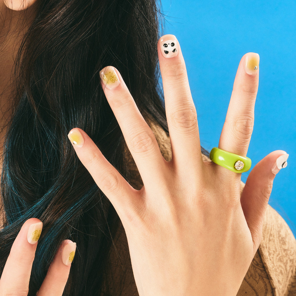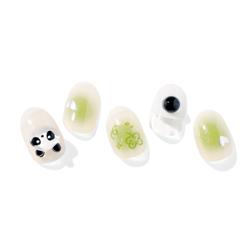 Meet our super cute Lucky Panda! 🍀 The 3D face and tail, created with clear parts, make the panda even more adorable. The green cheek nails with four-leaf clovers add a pop of color and complete the look. Don't miss out on the luck that this cute panda and four-leaf clover bring!