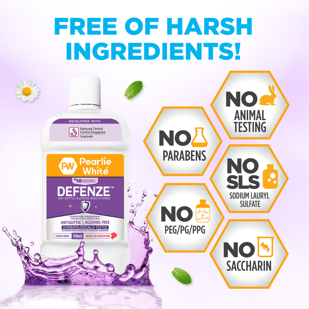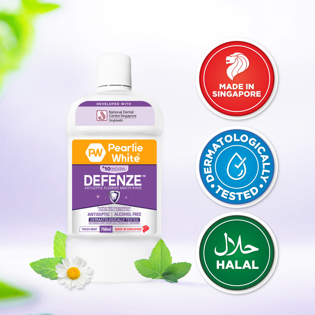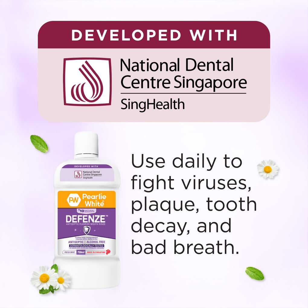 In collaboration with National Dental Centre Singapore (NDCS), home grown Singapore oral care brand Pearlie White, has developed a unique and proprietary mouth rinse formula that has anti-viral properties. The Pearlie White Defenze Antiseptic Fluoride Mouth Rinse’s cutting-edged formulation contains Cetylpyridinium Chloride (CPC), Fluoride, Xylitol and Zinc Gluconate that can be used in your daily fight against viruses, dental caries, bad breath, gum problems, plaque and tartar build-up.