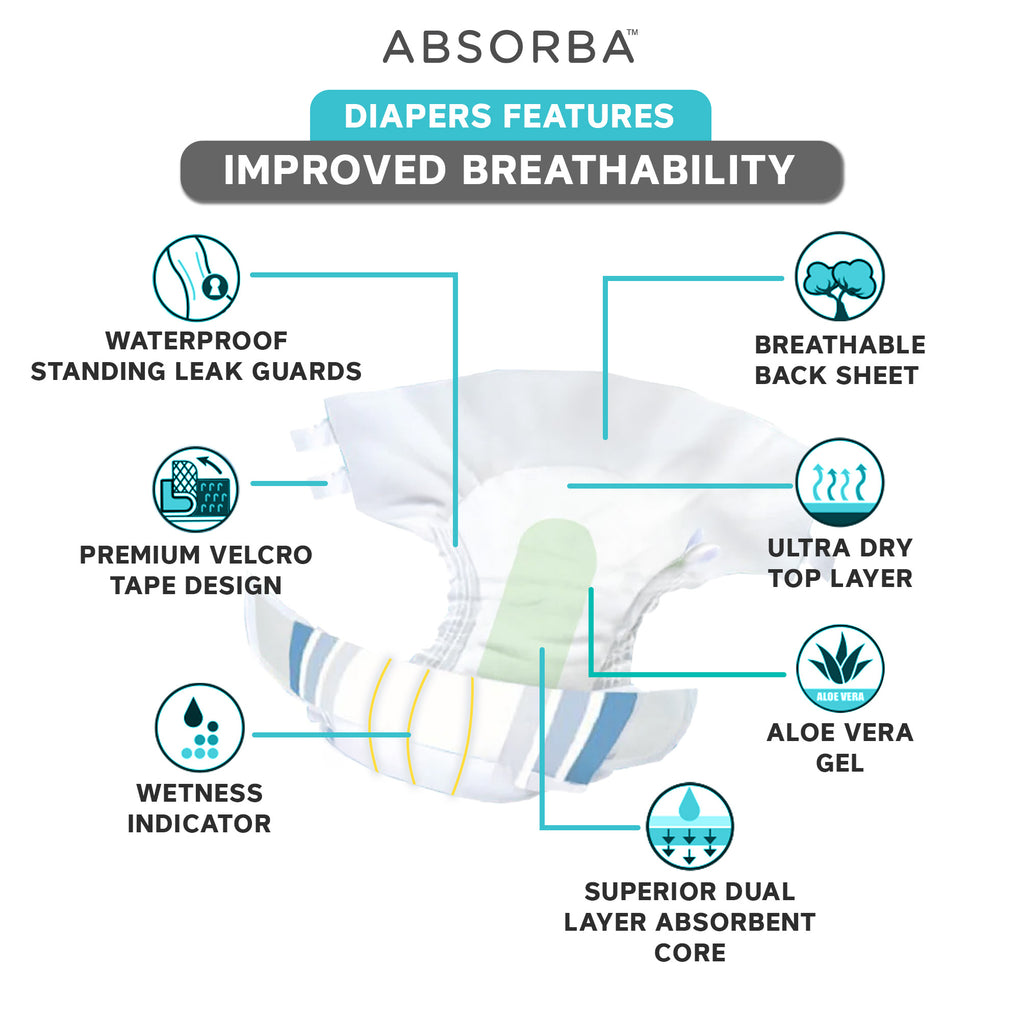 Absorba Nateen PLUS Adult Diapers features: