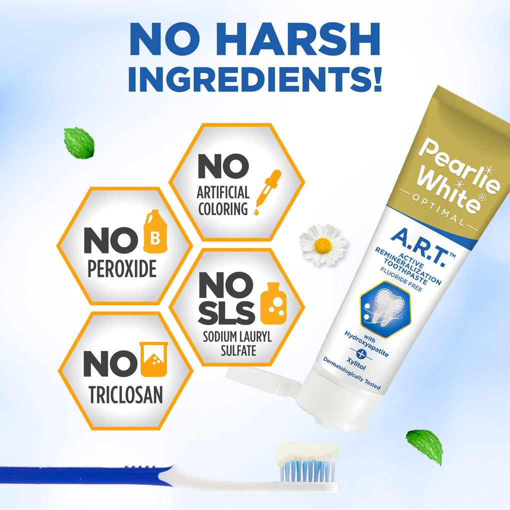 Over time, bacteria in plaque produce acids that damage your enamel. Our Optimal A.R.T. Active Remineralization Toothpaste contains hydroxyapatite, one of the main minerals that your tooth enamel is made of, to help repair demineralized tooth enamel.