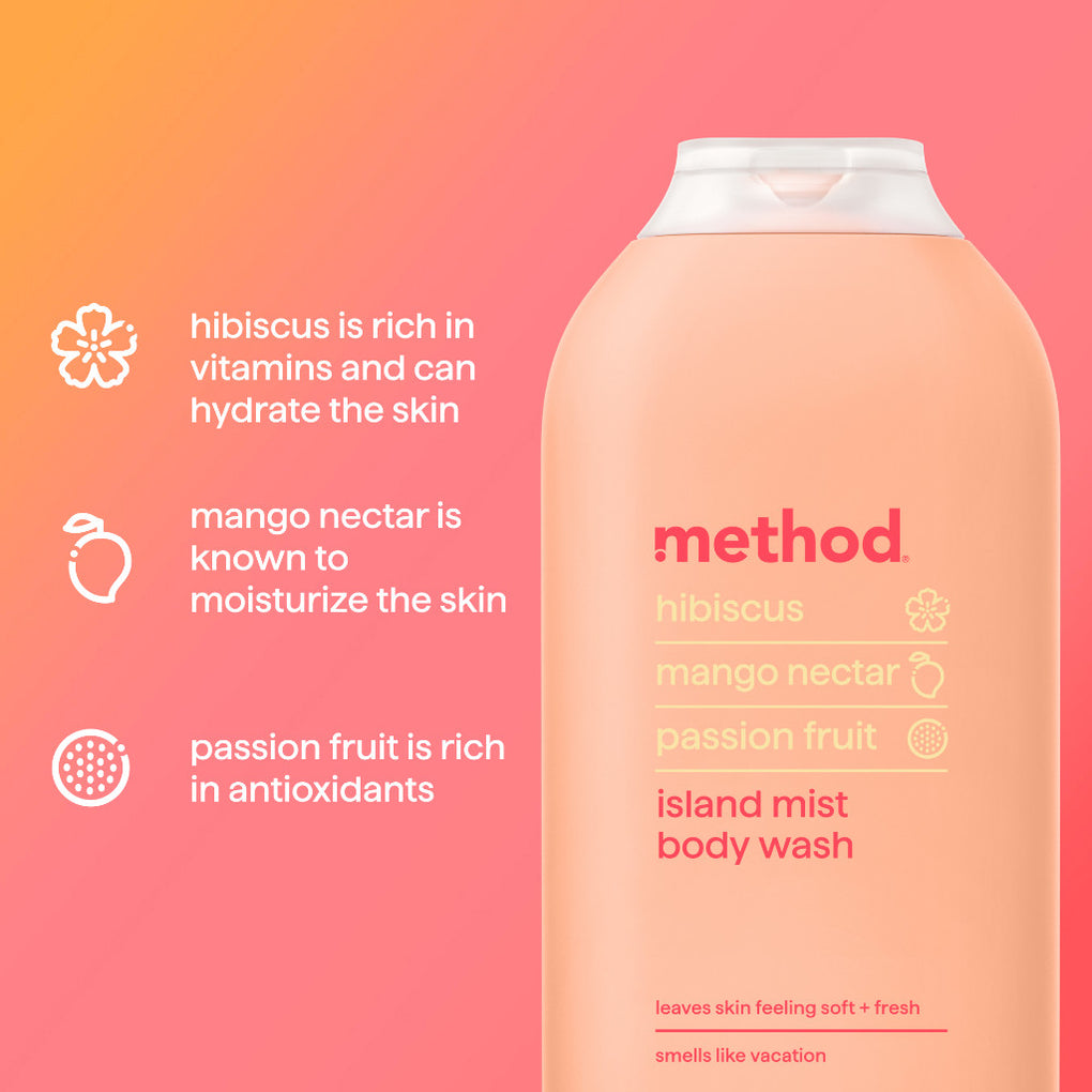 infused with hibiscus, mango nectar, and passion fruit, this cleansing body wash leaves your skin feeling moisturized and smelling like a tropical vacation.