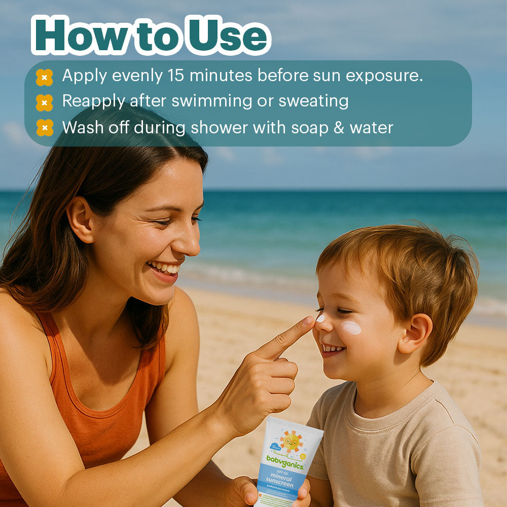 - Sunscreen made with all mineral actives: zinc oxide and titanium dioxide